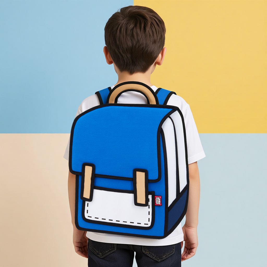 Style: 2D backpack, cartoon bag, pop art style